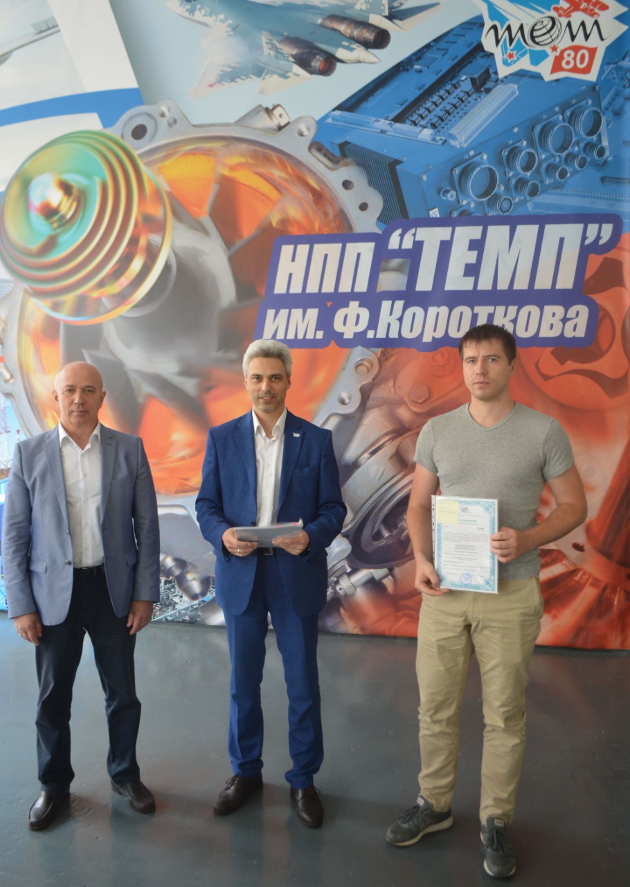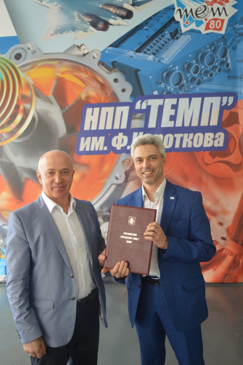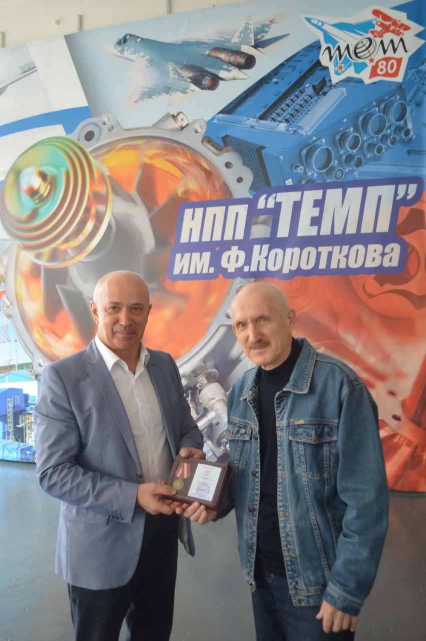 В канун 80-летия НПП «Темп» им.Ф. Короткова Председатель МГО ВОИР Дмитрий Иванович Зезюлин вручил предприятию «Почетную грамоту МГО ВОИР» за вклад в развитие изобретательства и рационализаторства, а также медали «За высокий вклад в развитие изобретательства» изобретателям предприятия: Сухолитко В.А. и Белукову А.А.
